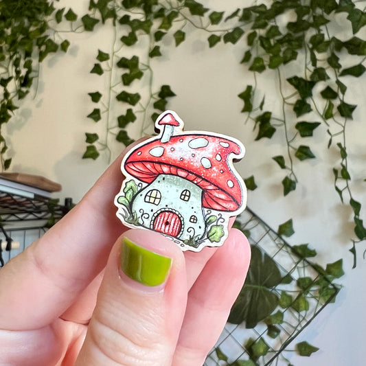 Mushroom House Wooden Pin