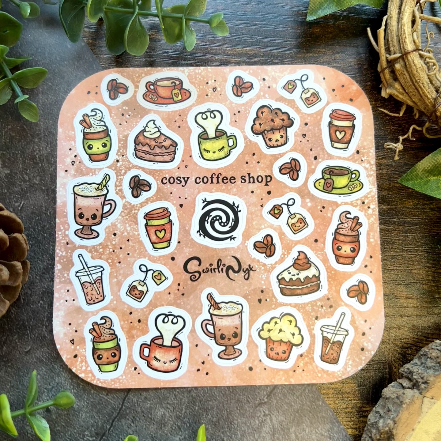 Light brown 'Latte' coffee sticker sheet perfect for your journals and to pretty up your planners or for coffee lovers! 'Cosy Coffee Shop' - A fresh latte themed coffee shop sticker sheet on buttery soft matte white sticker paper full of café treats and drinks! Great for calendars, scrapbooks and decorating notebooks!